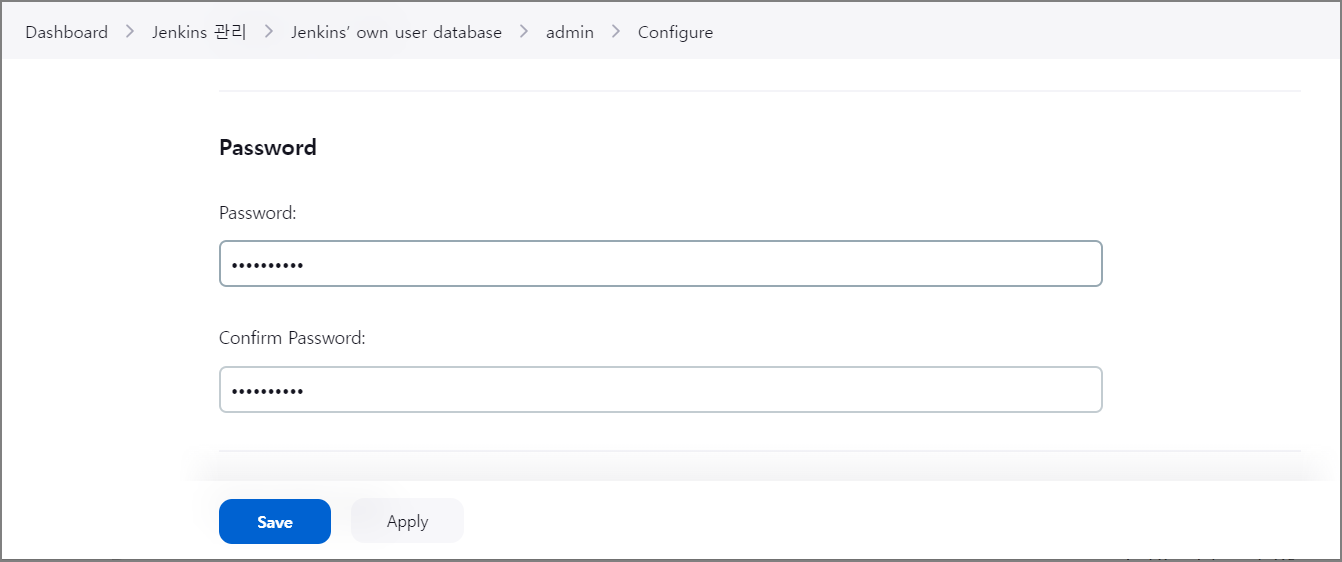 변경하고자 하는 패스워드를 입력 후 Save 버튼을 눌러 저장합니다.