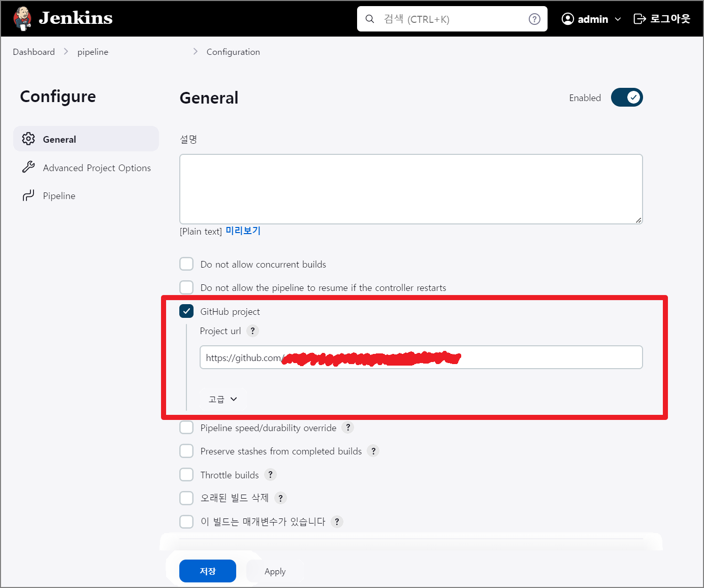 이제 GitHub 프로젝트 연동과 간단히 Pipeline을 동작하는 설정을 진행해보도록 하겠습니다.