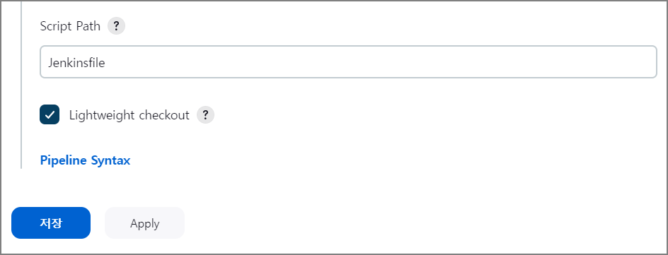 Jenkinsfile을 사용하여 Pipeline을 설정하기 위해 Pipeline script from SCM 설정을 추가합니다.