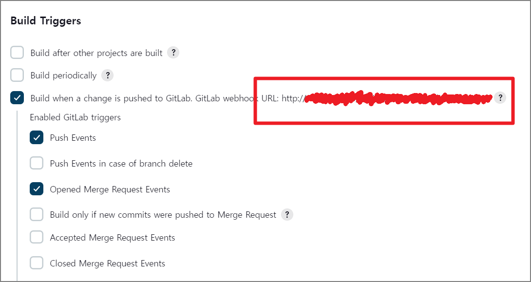 Secret token 항목에서 Generate 버튼을 클릭하여 GitLab WebHook과 연동할 token 값을 생성합니다.