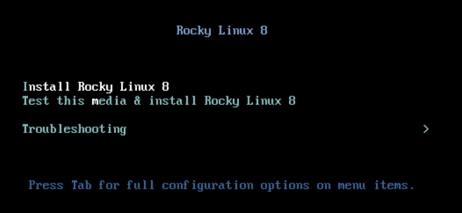 VM 실행 후 Rocky Linux 8 설치 화면에서 Install Rocky Linux 8을 선택합니다.