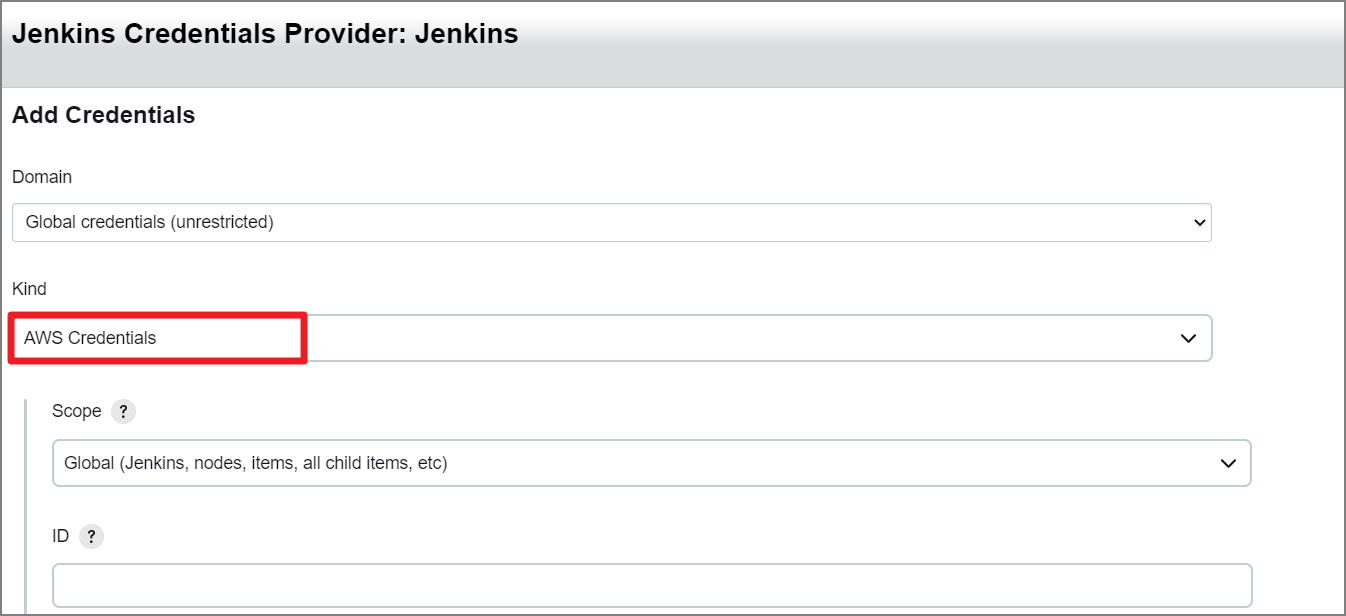 // `AWS_CREDENTIALS_ID` 값은 사전에 등록한 AWS Credentials 정보