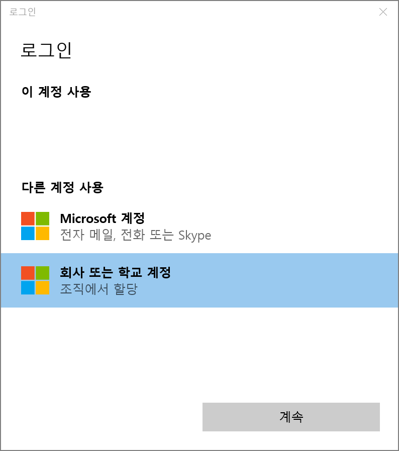 Microsoft 계정 로그인 팝업이 출력되며 해당 로그인을 통해 로그인을 진행합니다.