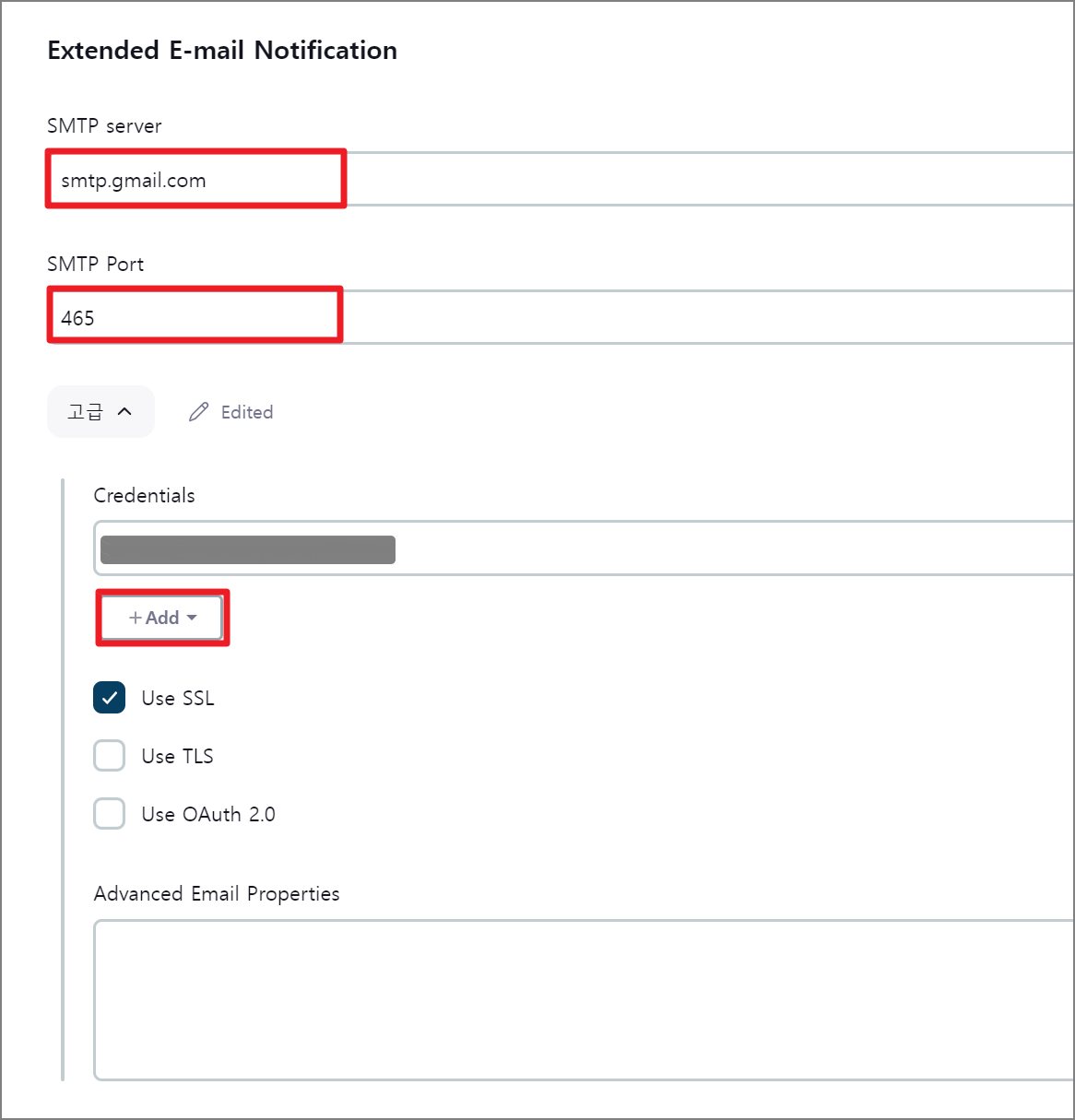 Credentials는 Email 알림을 발송하는 계정의 정보를 입력합니다.